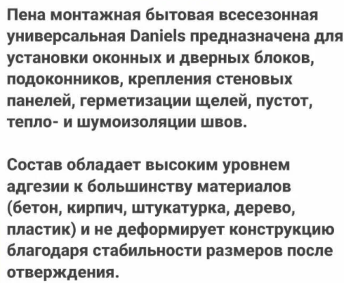 Пена монтажная DANIEL'S, 750 мл, всесезонная, трубка-адаптер, возможность окрашивания интересное: