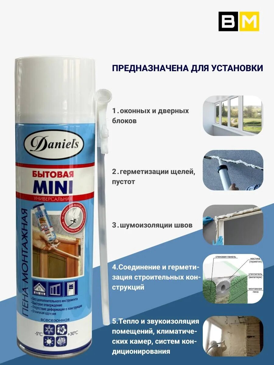Пена монтажная MINI бытовая DANIELS 500 мл (4шт.) интересное: