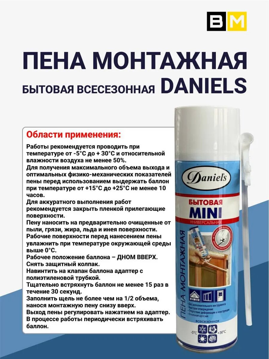 Пена монтажная MINI бытовая DANIELS 500 мл (6шт.) интересное: