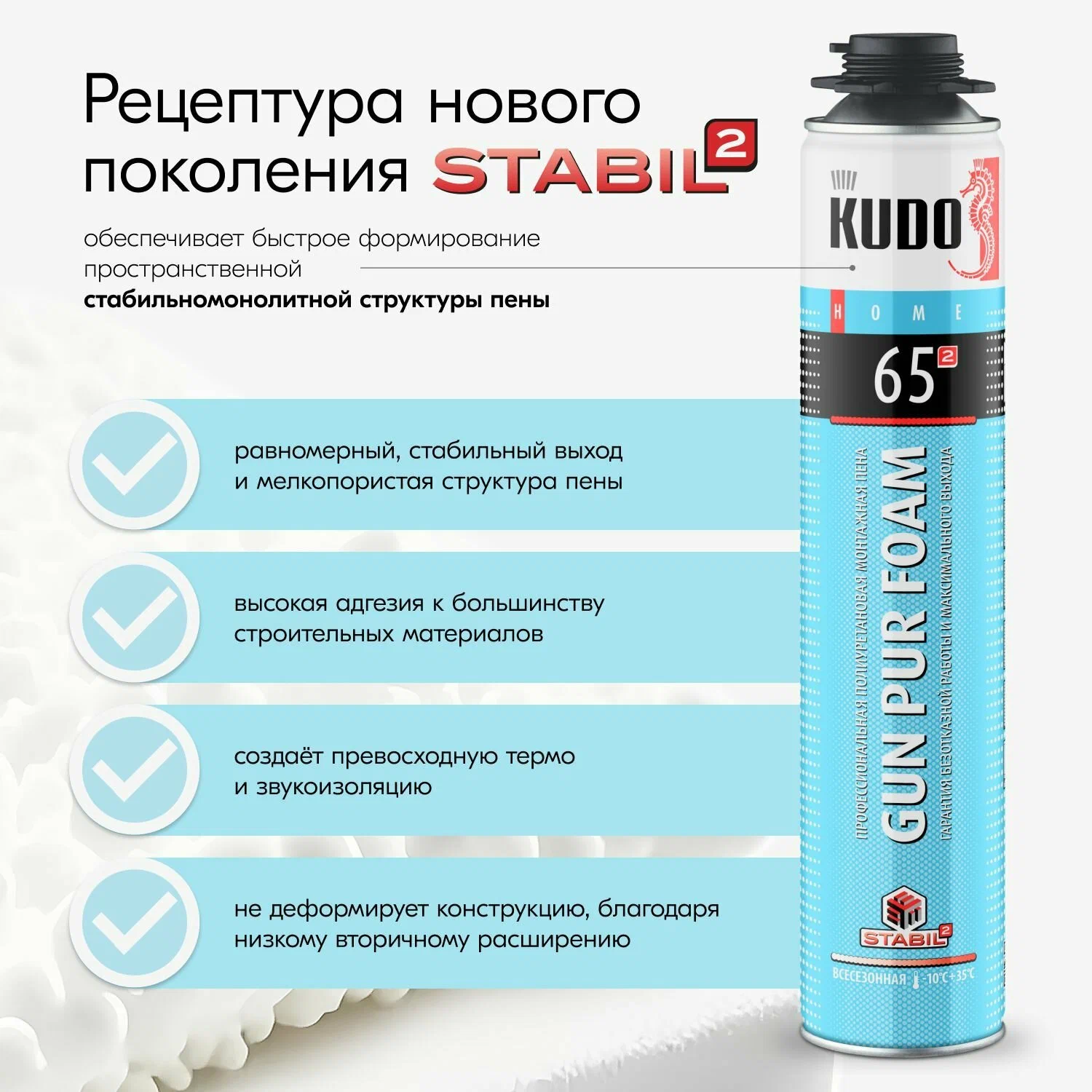 Монтажная пена KUDO "HOME" 65 1000мл, 12шт, всесезонная, возможность окрашивания интересное: