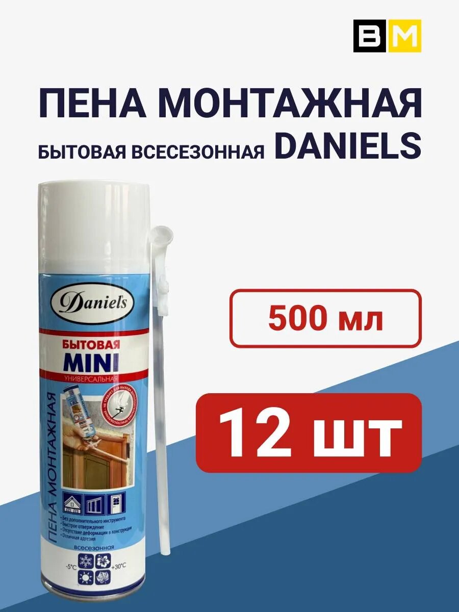 Пена монтажная MINI бытовая DANIELS 500 мл (12шт.) интересное: