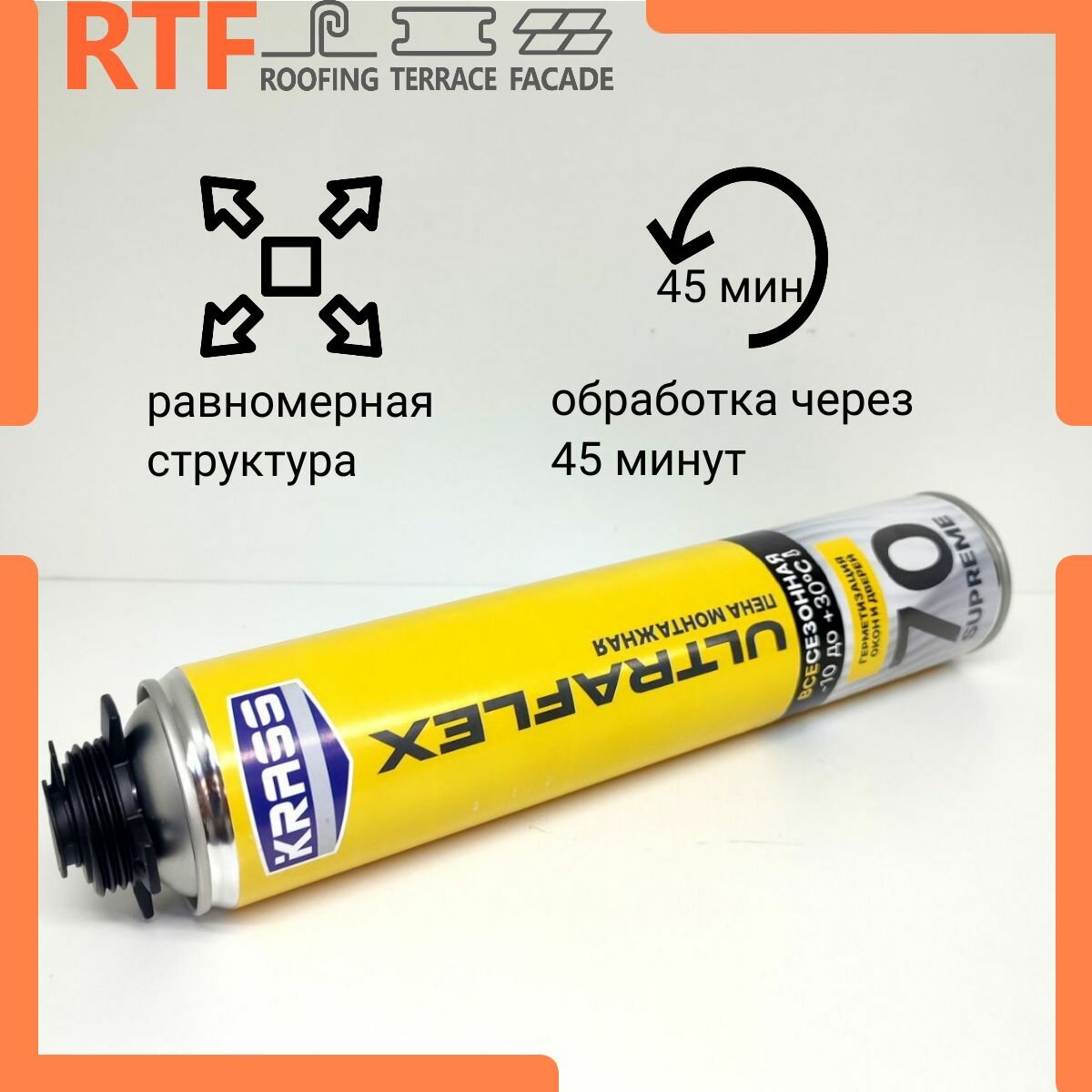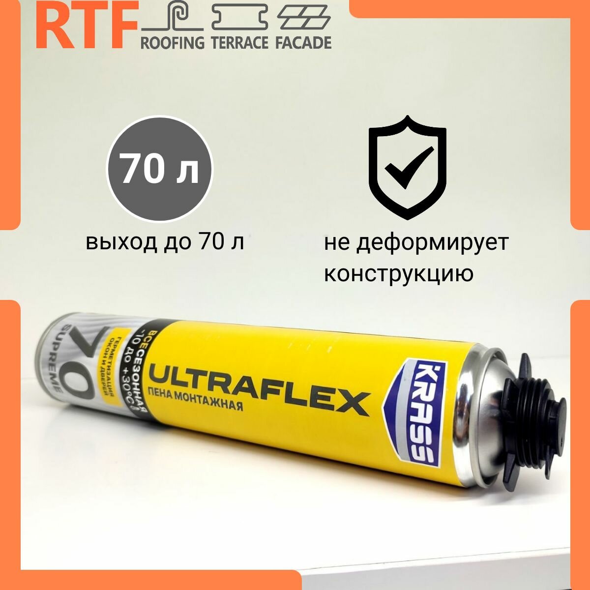 Пена монтажная KRASS ULTRAFLEX 70 SUPREME пистолетная всесезонная 890 мл интересное:
