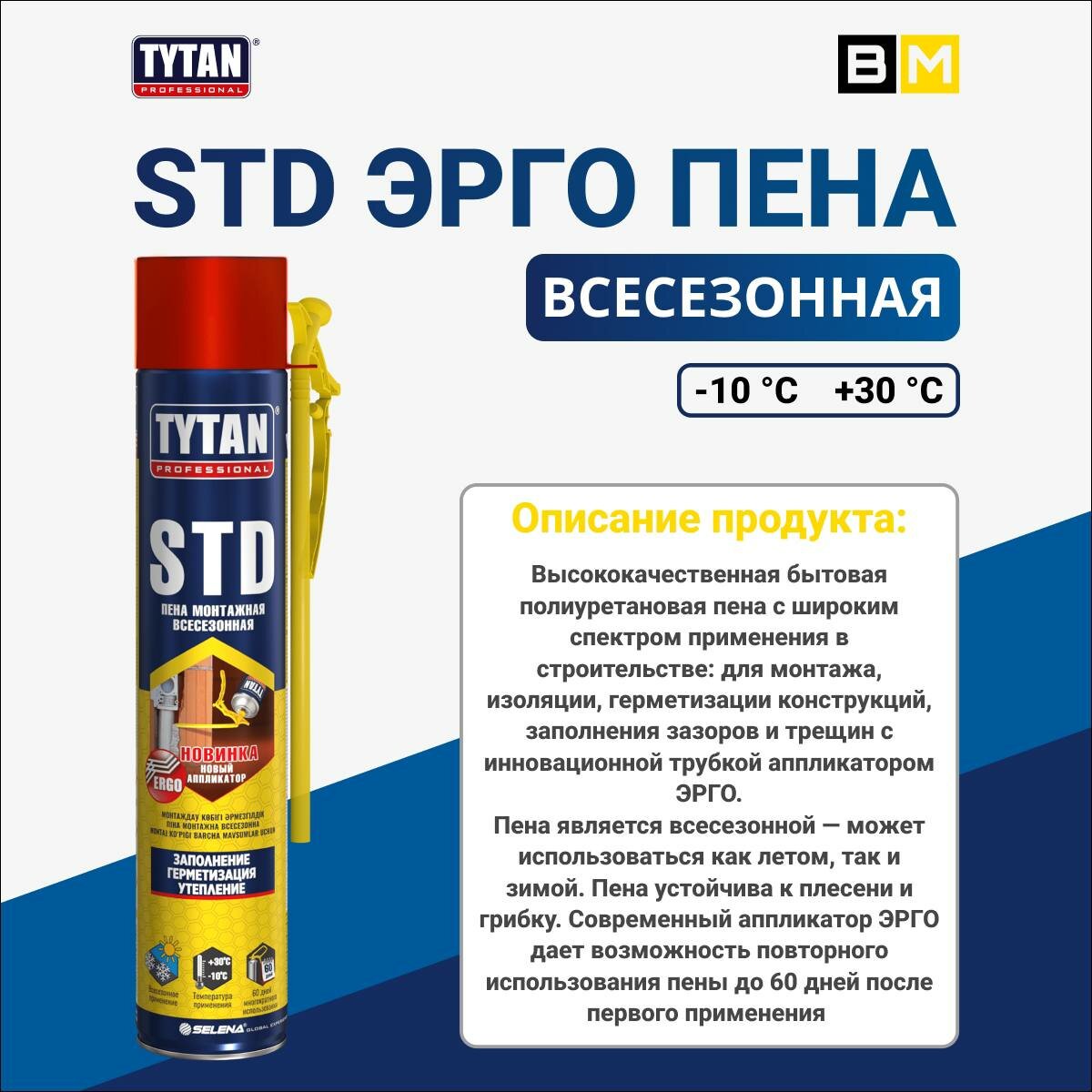 Пена монтажная бытовая всесезонная TYTAN STD 750 мл. 12шт