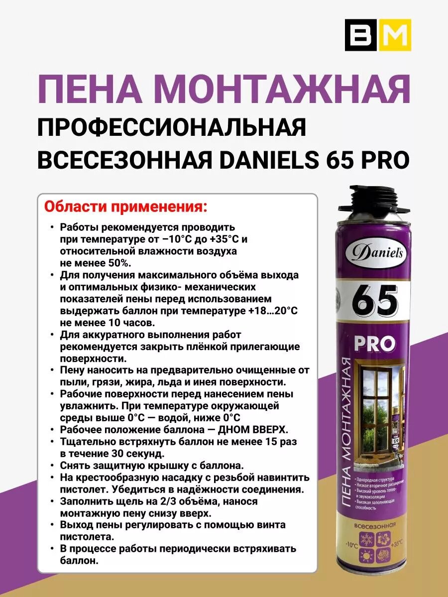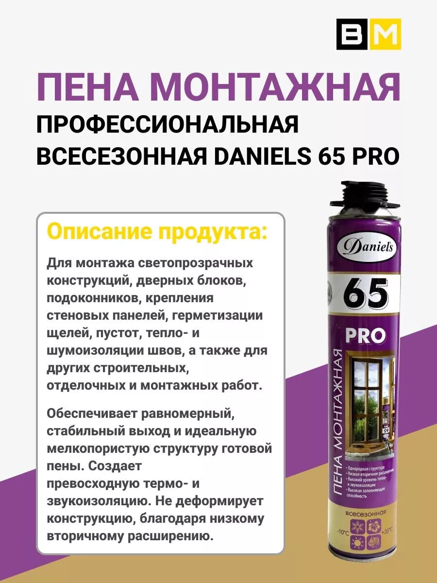 Пена монтажная всесезонная DANIELS 65 750ml 3шт интересное: