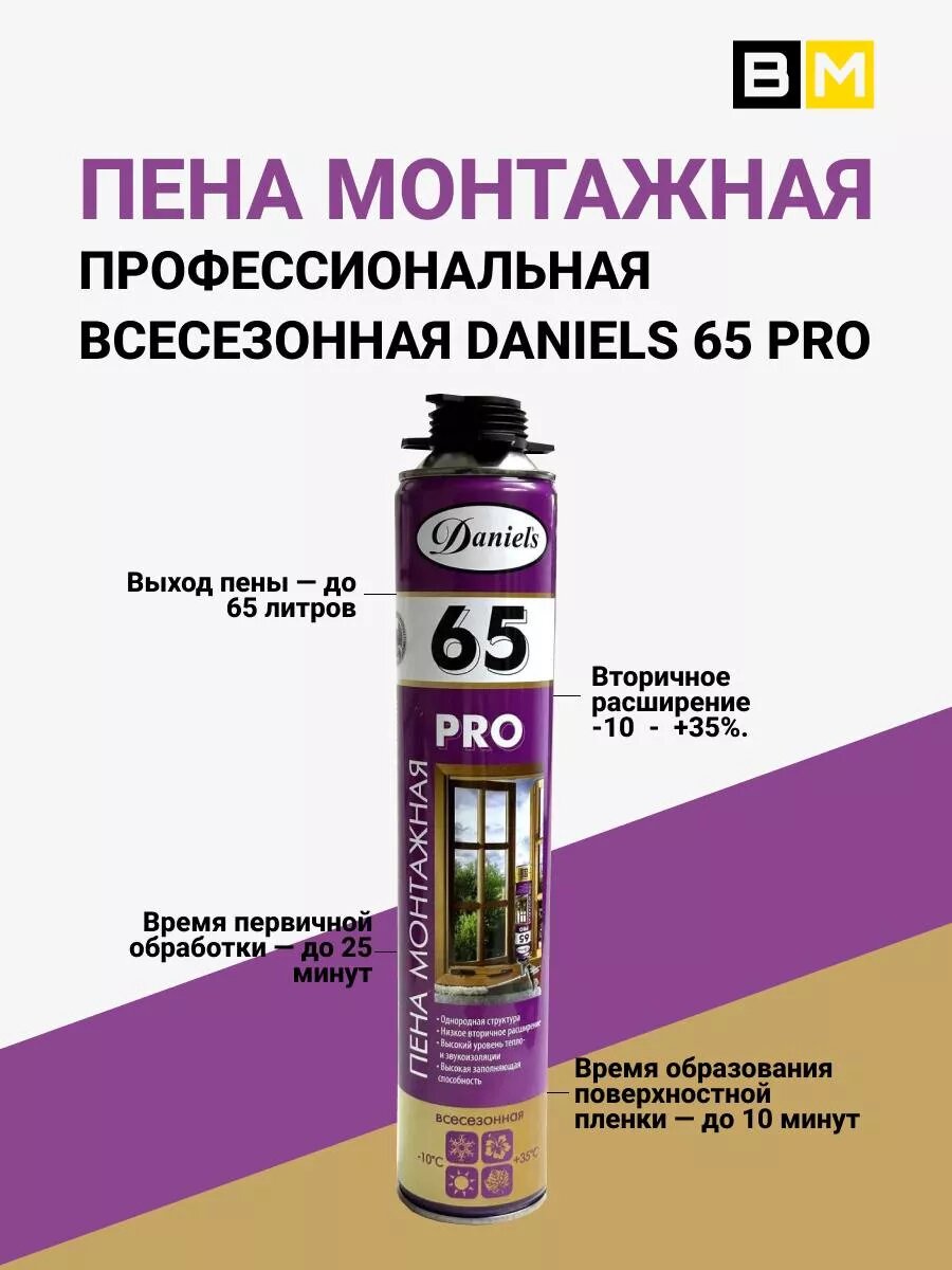 Пена монтажная всесезонная DANIELS 65 750ml 4шт интересное:
