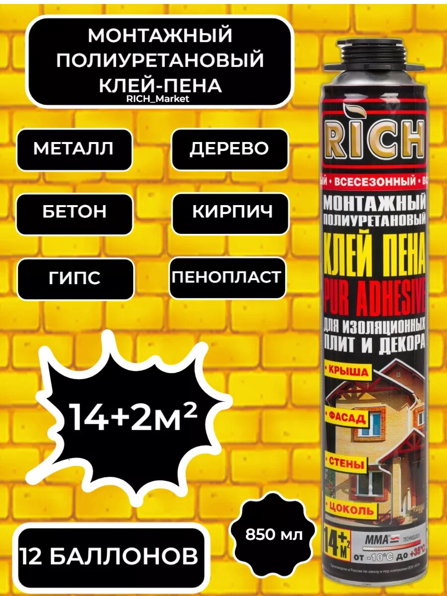 Клей-пена RICH, монтажная, профессиональная, 12 баллонов интересное: