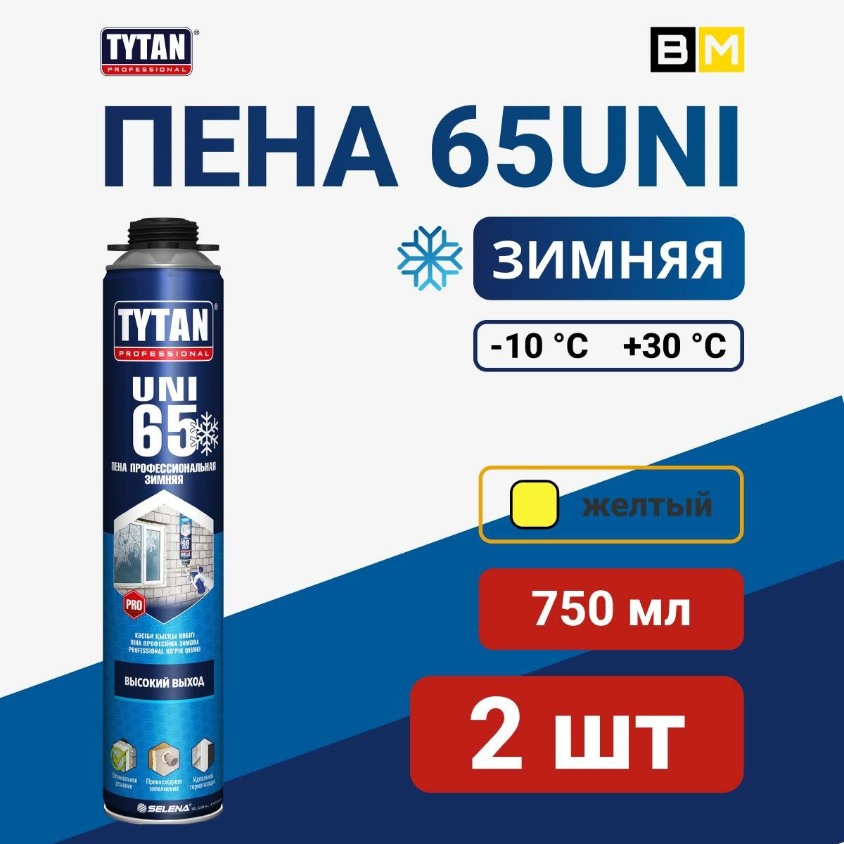 Пена монтажная профессиональная зимняя TYTAN 65UNI, 750 мл, 2шт интересное: