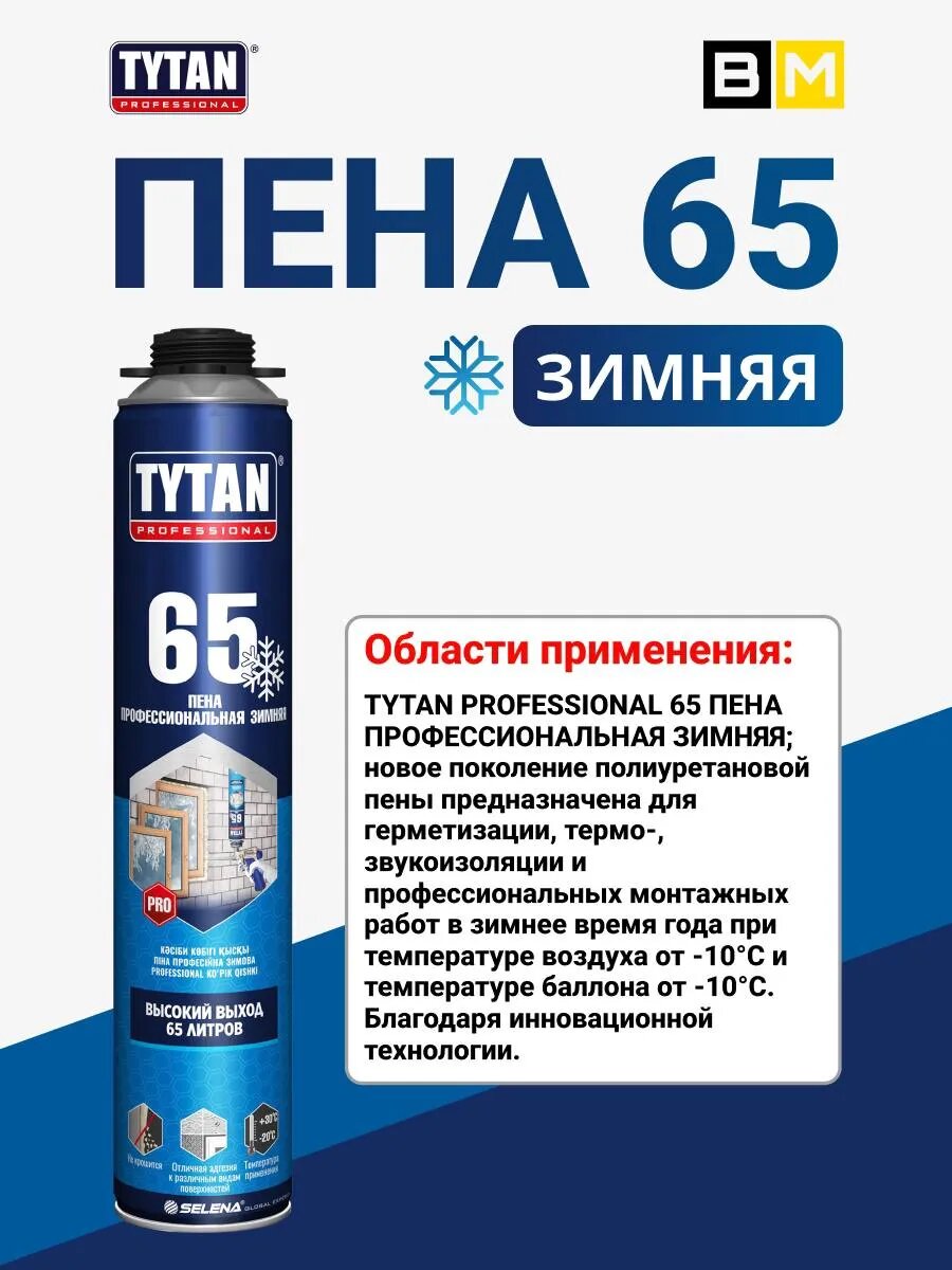 Ниже Вы можете прочитать отзывы на TYTAN 65 Пена профессиональная зимняя, ознакомится с подробными характеристиками, посмотреть интересные обзоры и фотографии на TYTAN 65 Пена профессиональная зимняя.