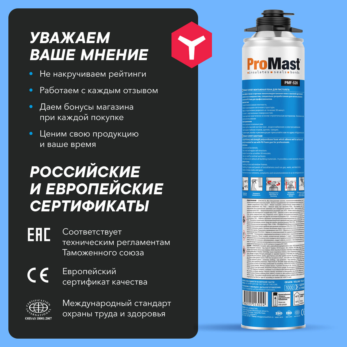 Монтажная пена под пистолет ProMast Expert, профессиональная, опт коробка (16 штук) интересное: