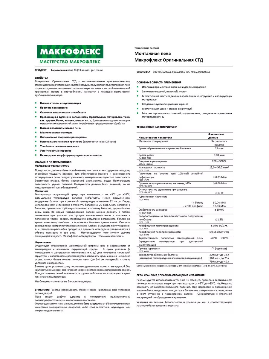 Пена стандартная Макрофлекс Оригинальная 300 мл интересное: