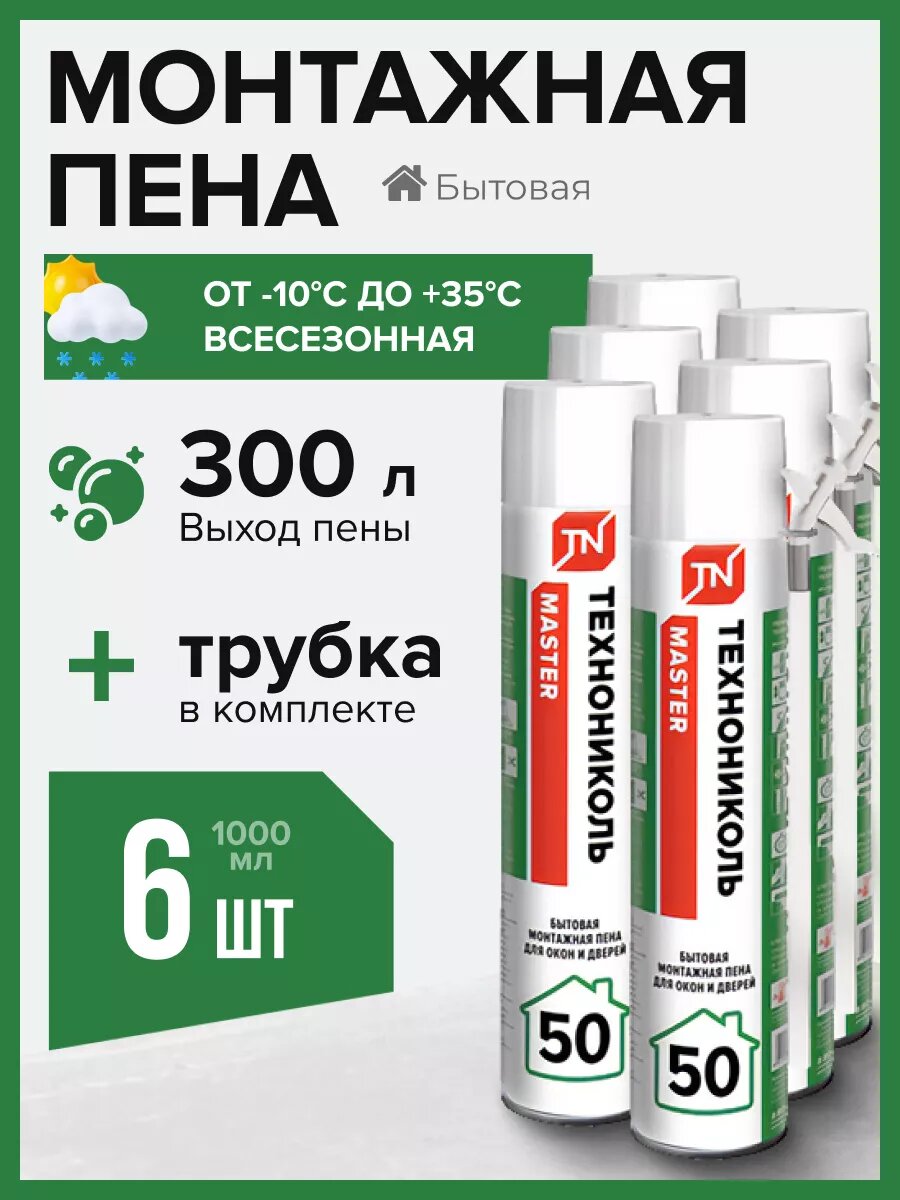 Пена монтажная MASTER 50 Бытовая 6 шт интересное: