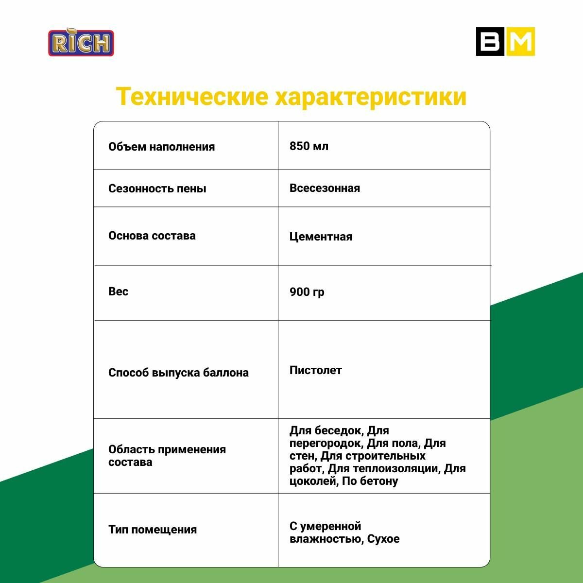 Профессиональная строительная пена цемент RICH, всесезонная, 850мл, 1 шт. интересное: