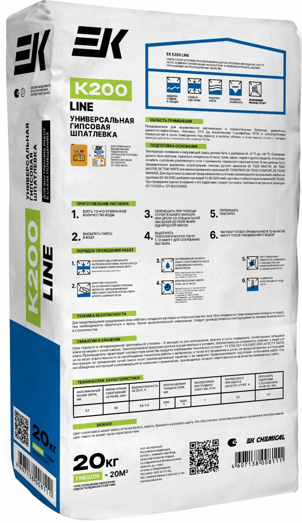 Шпатлёвка универсальная гипсовая К200 LINE, 20 кг интересное: