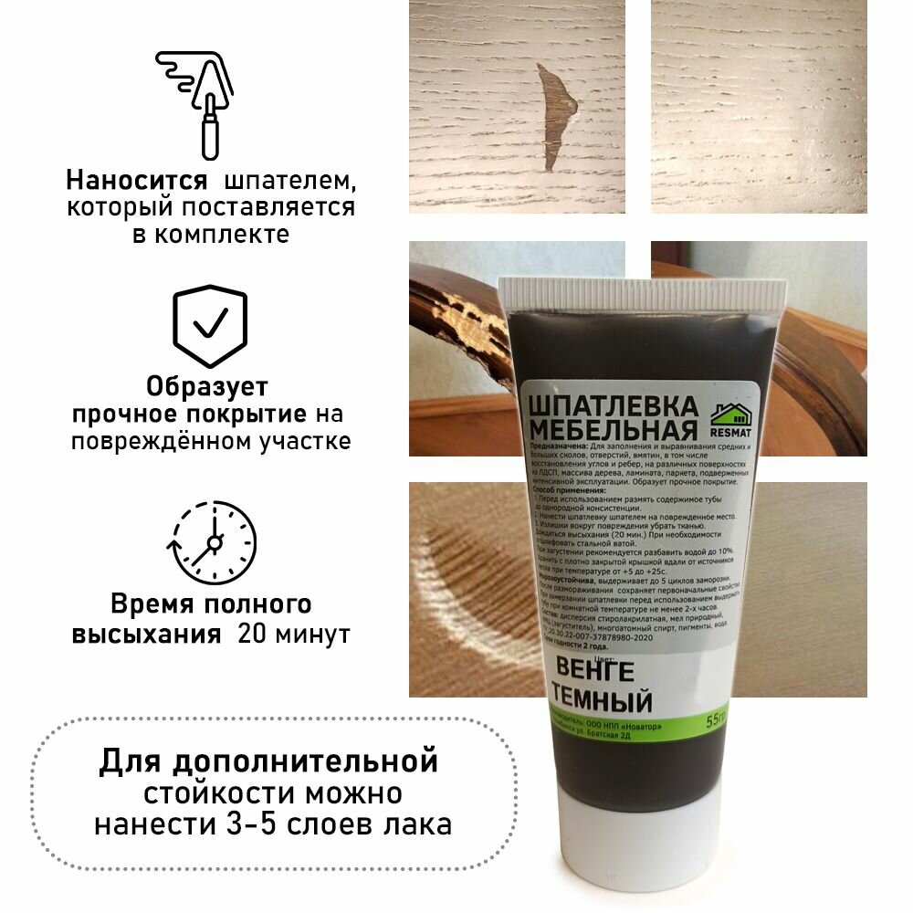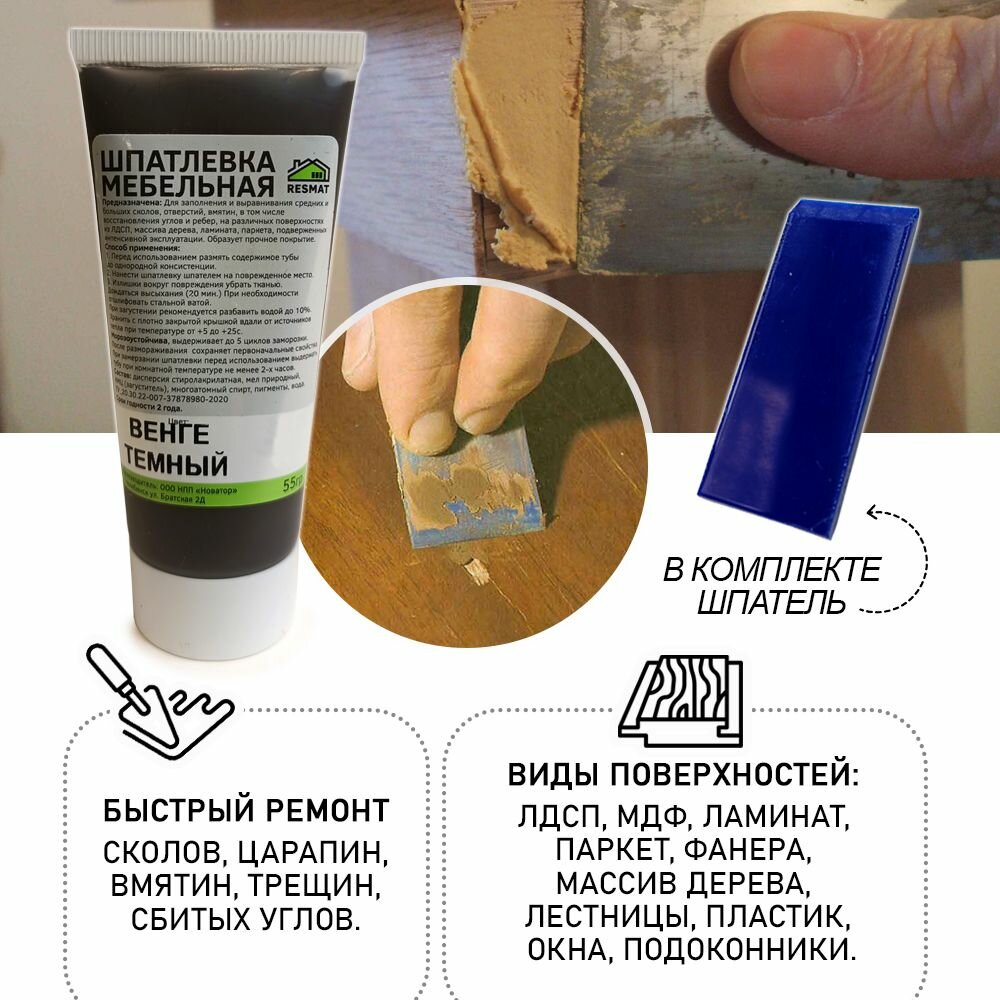 Шпатлевка в блистере мебельная для ремонт мебели и ламината, цвет Венге Темный интересное:
