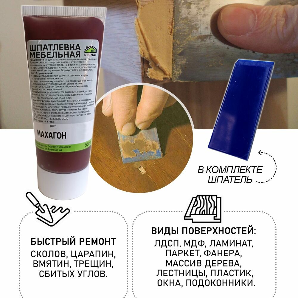 Шпатлевка в блистере мебельная для ремонт мебели и ламината, цвет Махагон интересное: