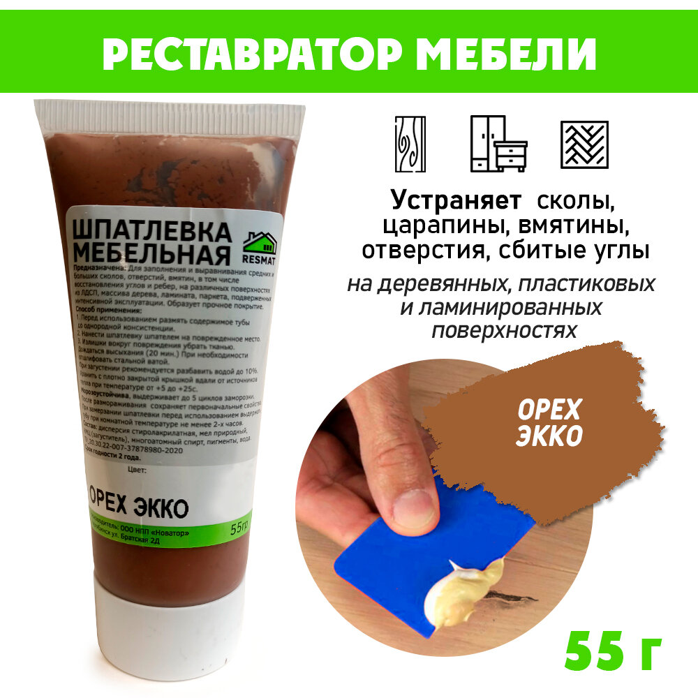 Ниже Вы можете прочитать отзывы на Шпатлевка мебельная без блистера, ремонт мебели ламината - цвет Орех Экко, ознакомится с подробными характеристиками, посмотреть интересные обзоры и фотографии на Шпатлевка мебельная без блистера, ремонт мебели ламината - цвет Орех Экко.