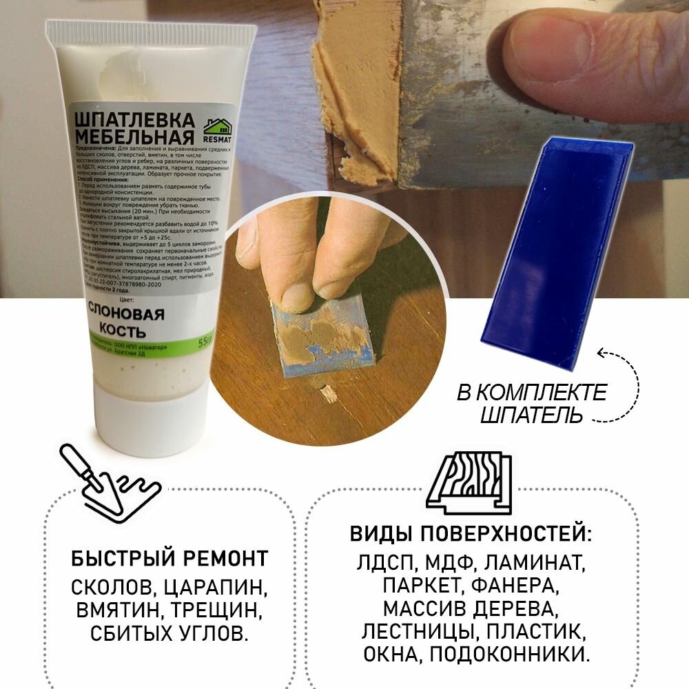 Шпатлевка в блистере мебельная для ремонт мебели и ламината, цвет Слоновая Кость интересное: