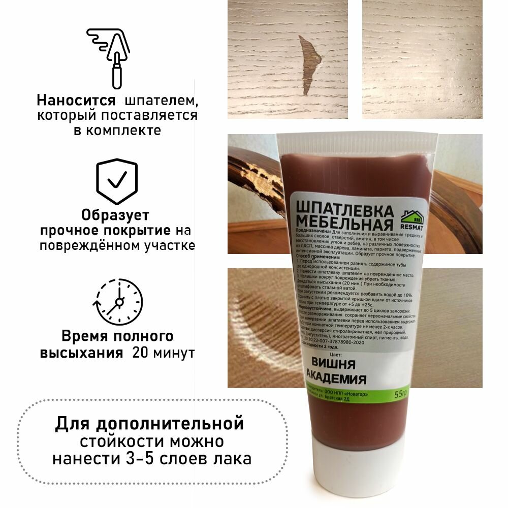 Шпатлевка в блистере мебельная для ремонт мебели и ламината, цвет Вишня Академия интересное: