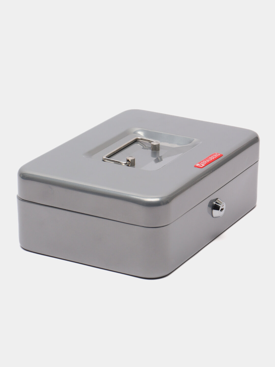 Ящик для денег BRAUBERG , ценностей, документов, печатей, 90х180х250 мм, ключевой замок, серебристый, , 291059