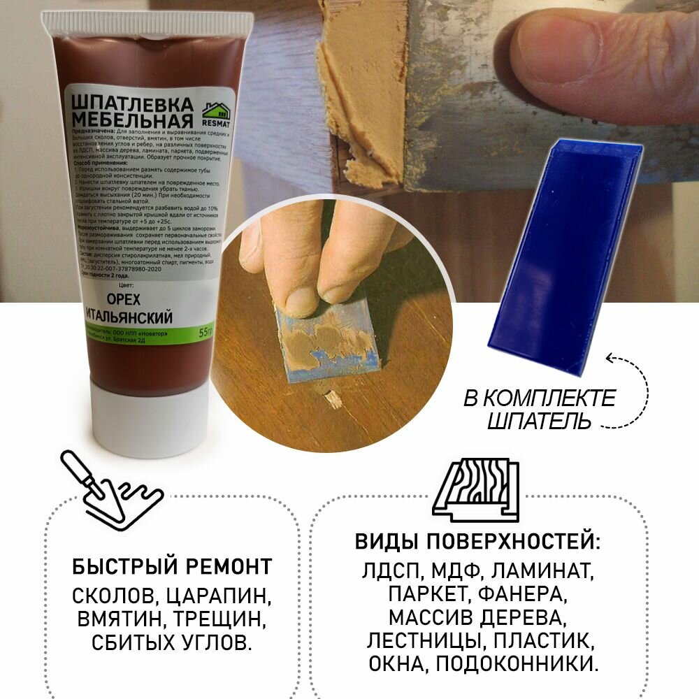 Шпатлевка в блистере мебельная для ремонт мебели и ламината, цвет Орех Итальянский интересное:
