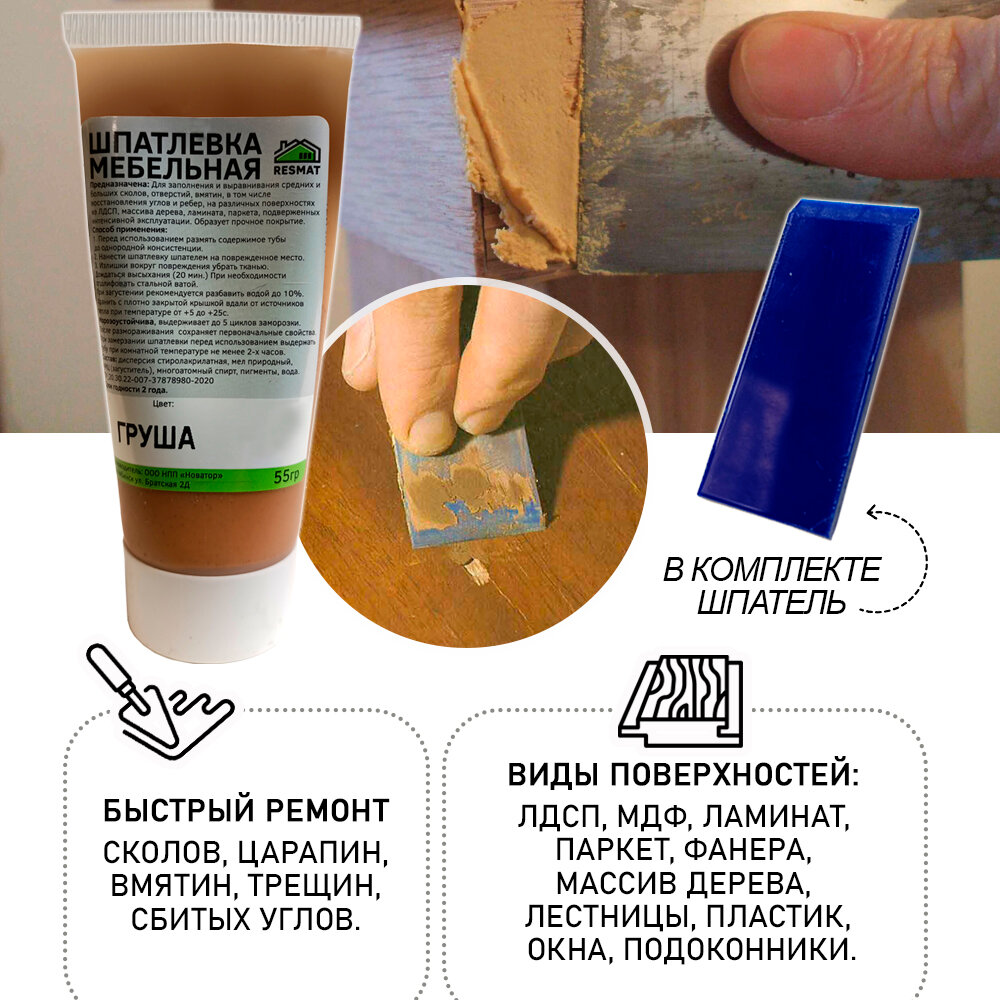 Ниже Вы можете прочитать отзывы на Шпатлевка мебельная без блистера, ремонт мебели ламината - цвет Груша, ознакомится с подробными характеристиками, посмотреть интересные обзоры и фотографии на Шпатлевка мебельная без блистера, ремонт мебели ламината - цвет Груша.