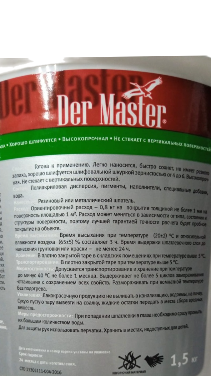 Der Master Шпатлевка интерьерная латексная высокопрочная Белая, 1.5 кг интересное: