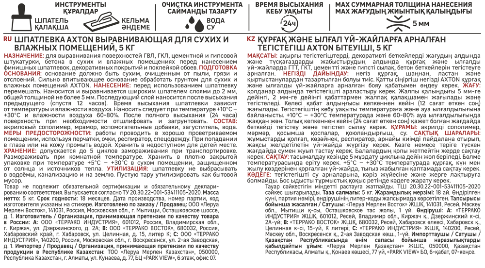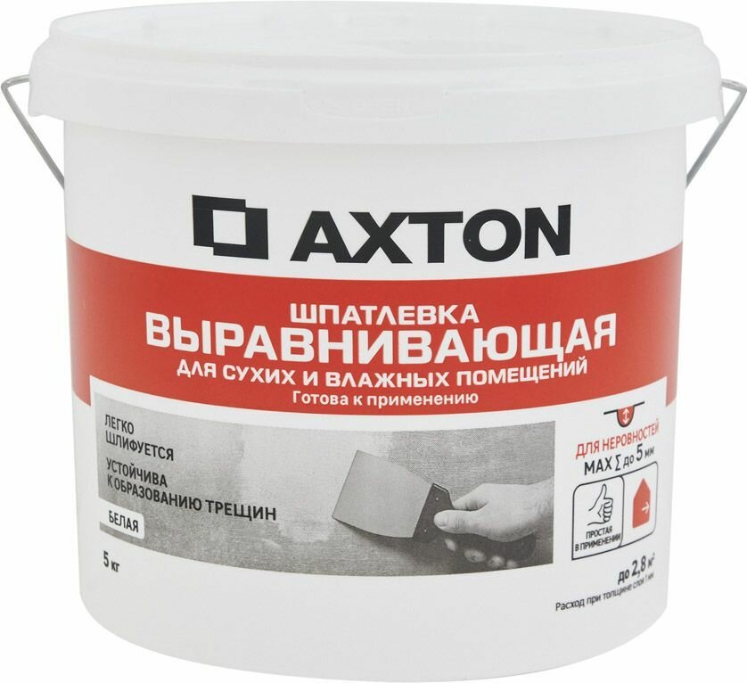 Акстон шпатлевка выравнивающая готовая (5кг) / AXTON шпаклевка выравнивающая для сухих и влажных помещений (5кг) интересное: