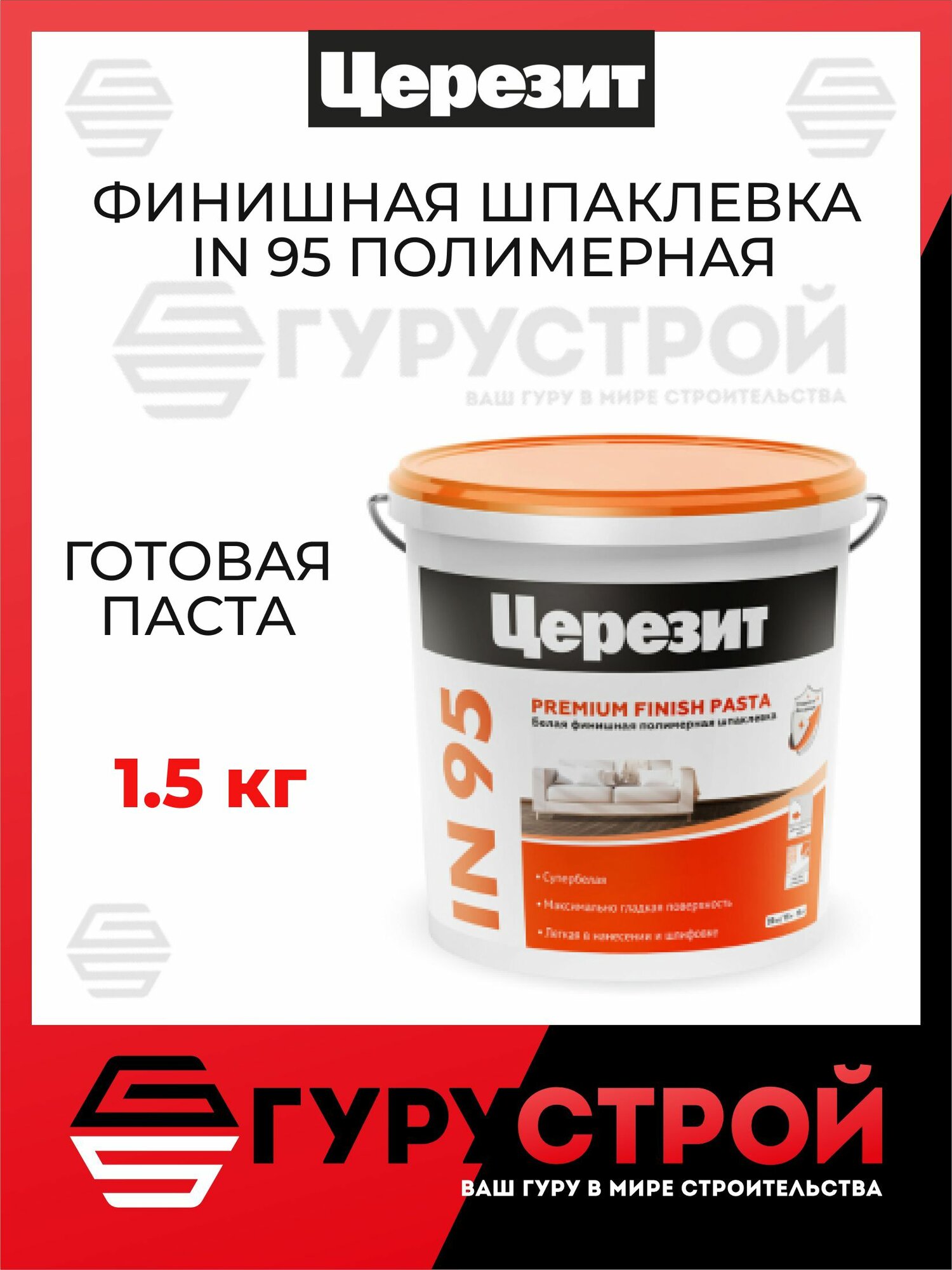 Ниже Вы можете прочитать отзывы на Шпаклевка IN 95 готовая, полимерная, всесезонная, 1,5 кг, ознакомится с подробными характеристиками, посмотреть интересные обзоры и фотографии на Шпаклевка IN 95 готовая, полимерная, всесезонная, 1,5 кг.