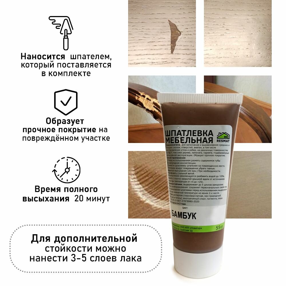 Шпатлевка в блистере мебельная для ремонт мебели и ламината, цвет Бамбук интересное: