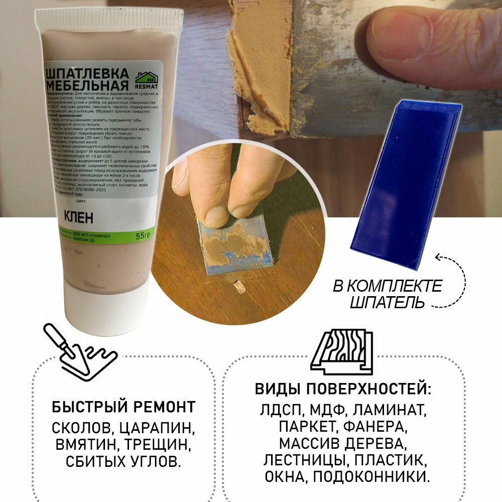 Шпатлевка в блистере мебельная для ремонт мебели и ламината, цвет Клён интересное: