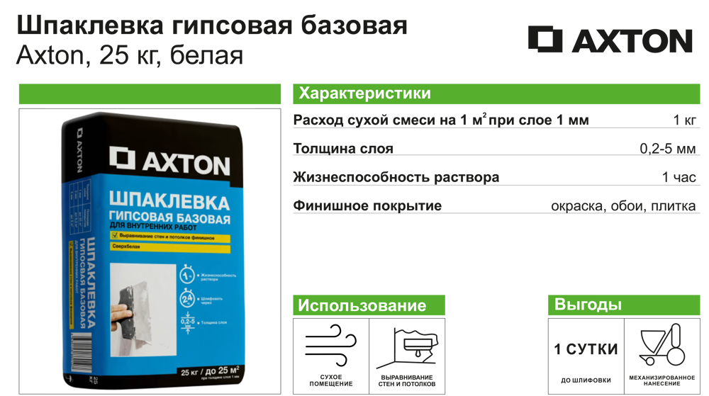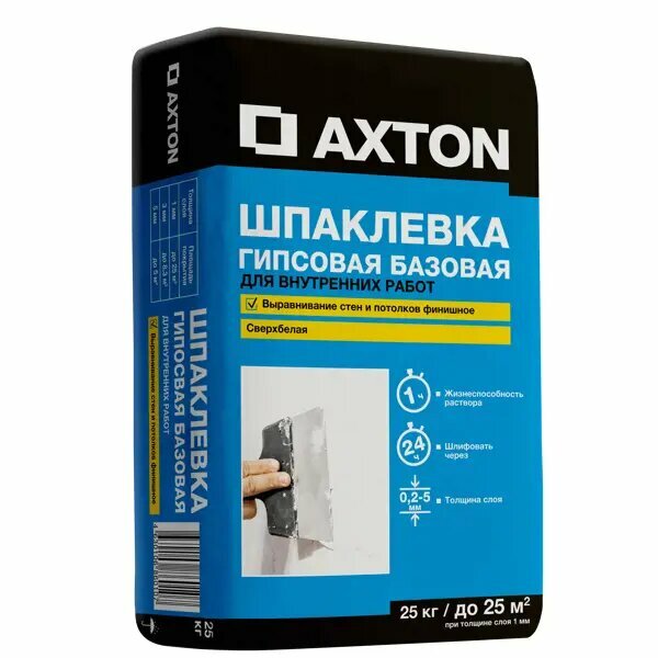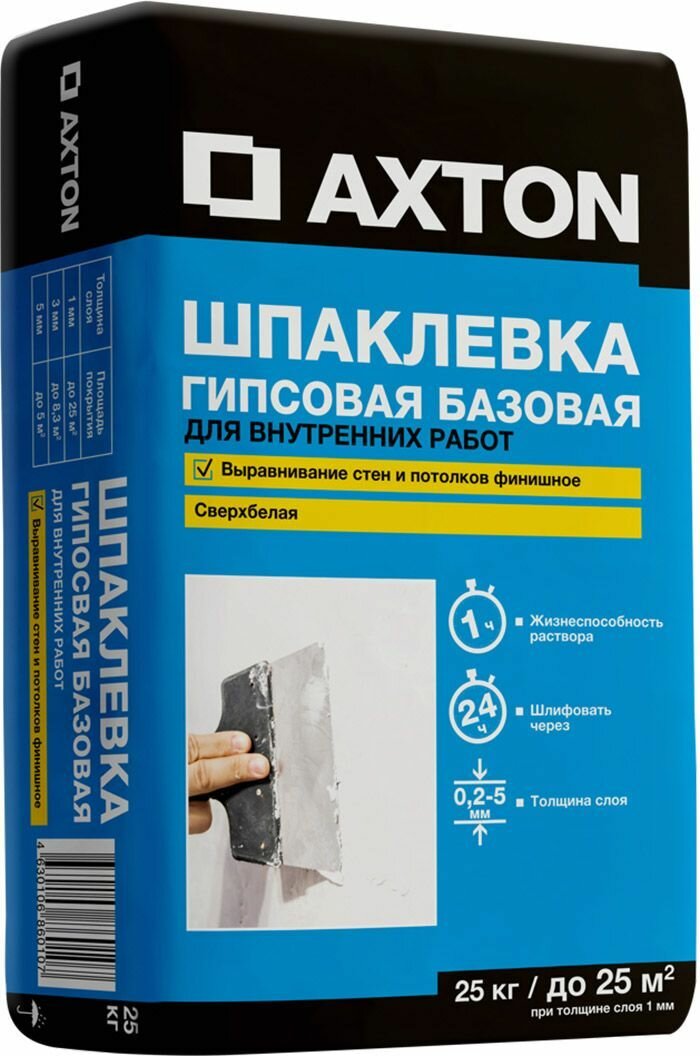 Акстон шпатлевка гипсовая базовая (25кг) / AXTON шпаклевка гипсовая базовая для внутренних работ сверхбелая (25кг) интересное: