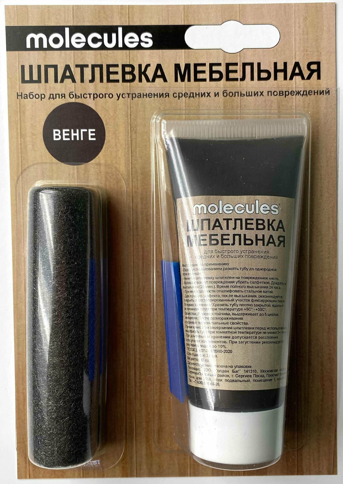 Шпатлевка мебельная со шпателем Molecules 55 г цвет венге интересное: