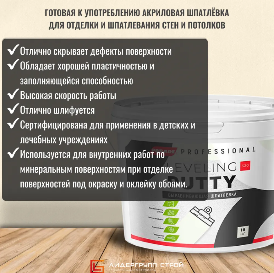 Шпатлёвка Специальная Выравнивающая Parade S20 16кг Белая для Внутренних Работ / Парад С20.