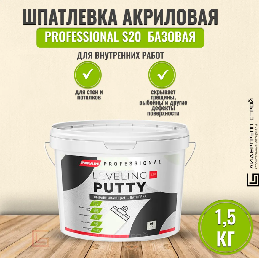 Шпатлевка акриловая PARADE PROFESSIONAL S20 базовая 1,5кг интересное: