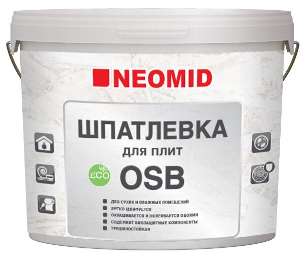 Шпатлевка для Плит OSB Neomid 1.3кг Образует Влагостойкое, Эластичное Покрытие / Неомид для ОСБ.* интересное: