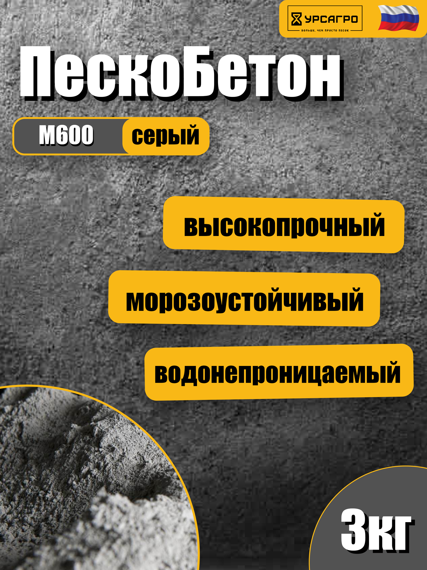 Пескобетон Урсагро М600, с фиброволокном, 3 кг, мелкорельефный, светло-серый