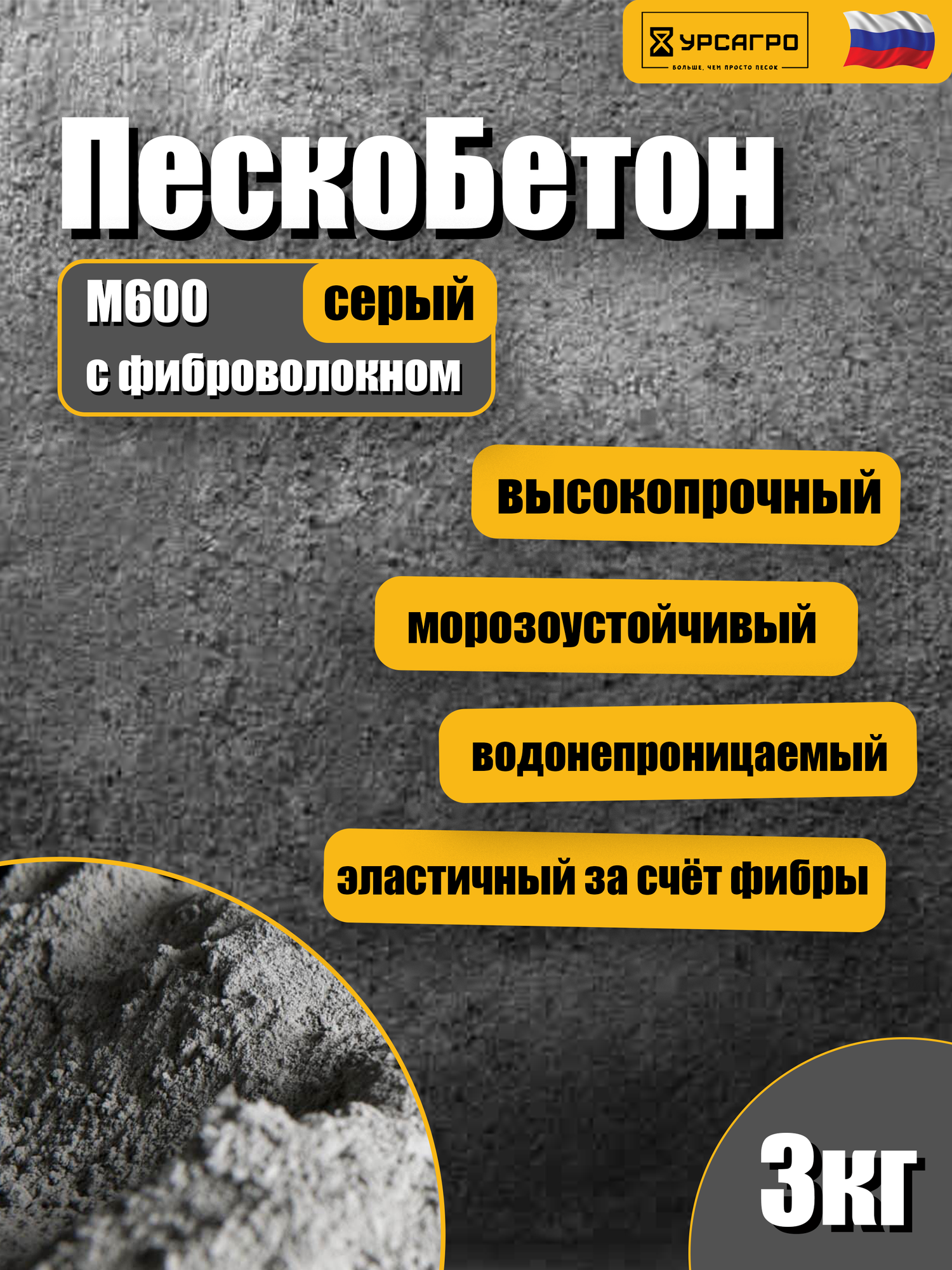 Пескобетон Урсагро М600, с фиброволокном, 3 кг, мелкорельефный, светло-серый интересное: