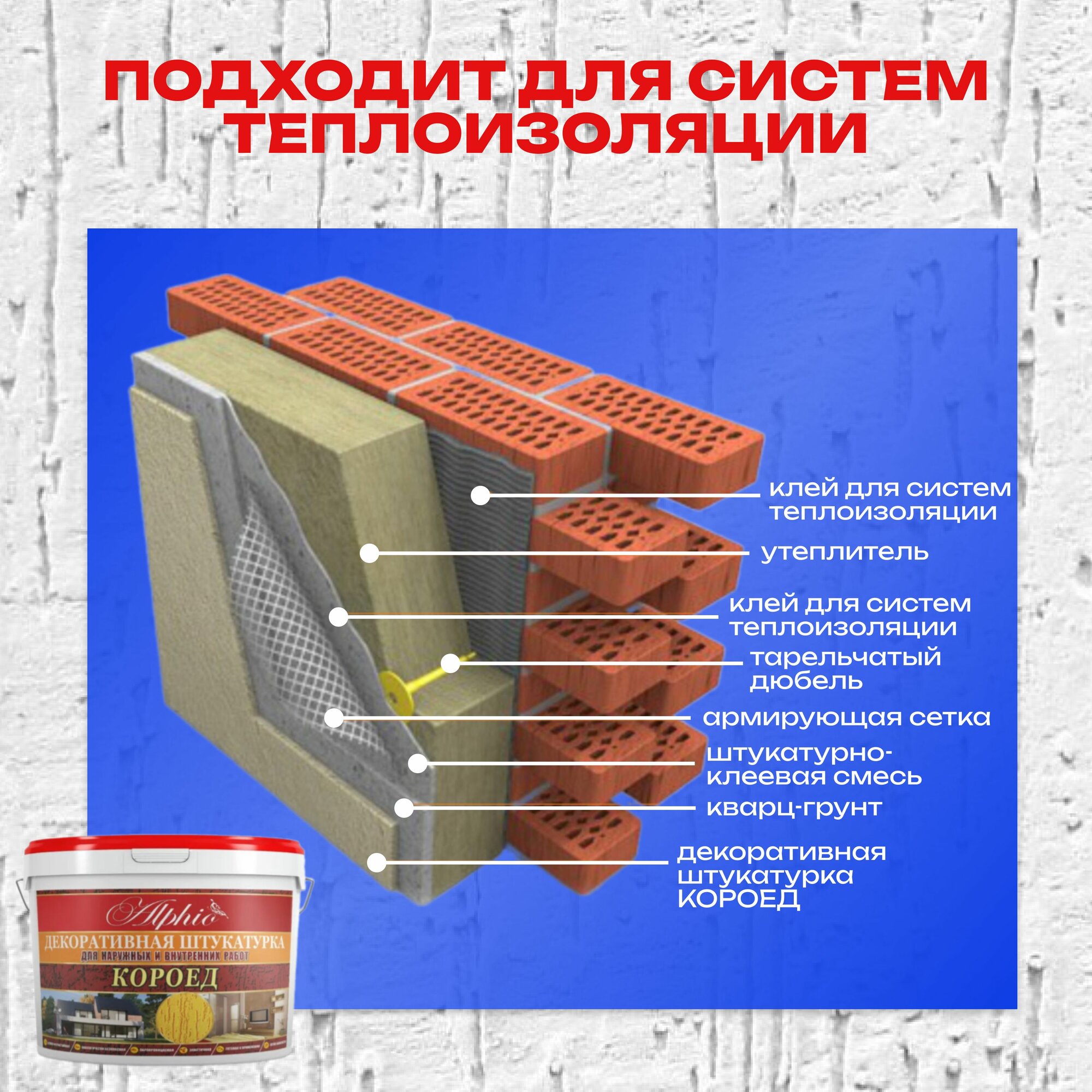 Штукатурка Короед 2,0мм фракция, декоративная готовая, фасадная и интерьерная, 15 кг интересное: