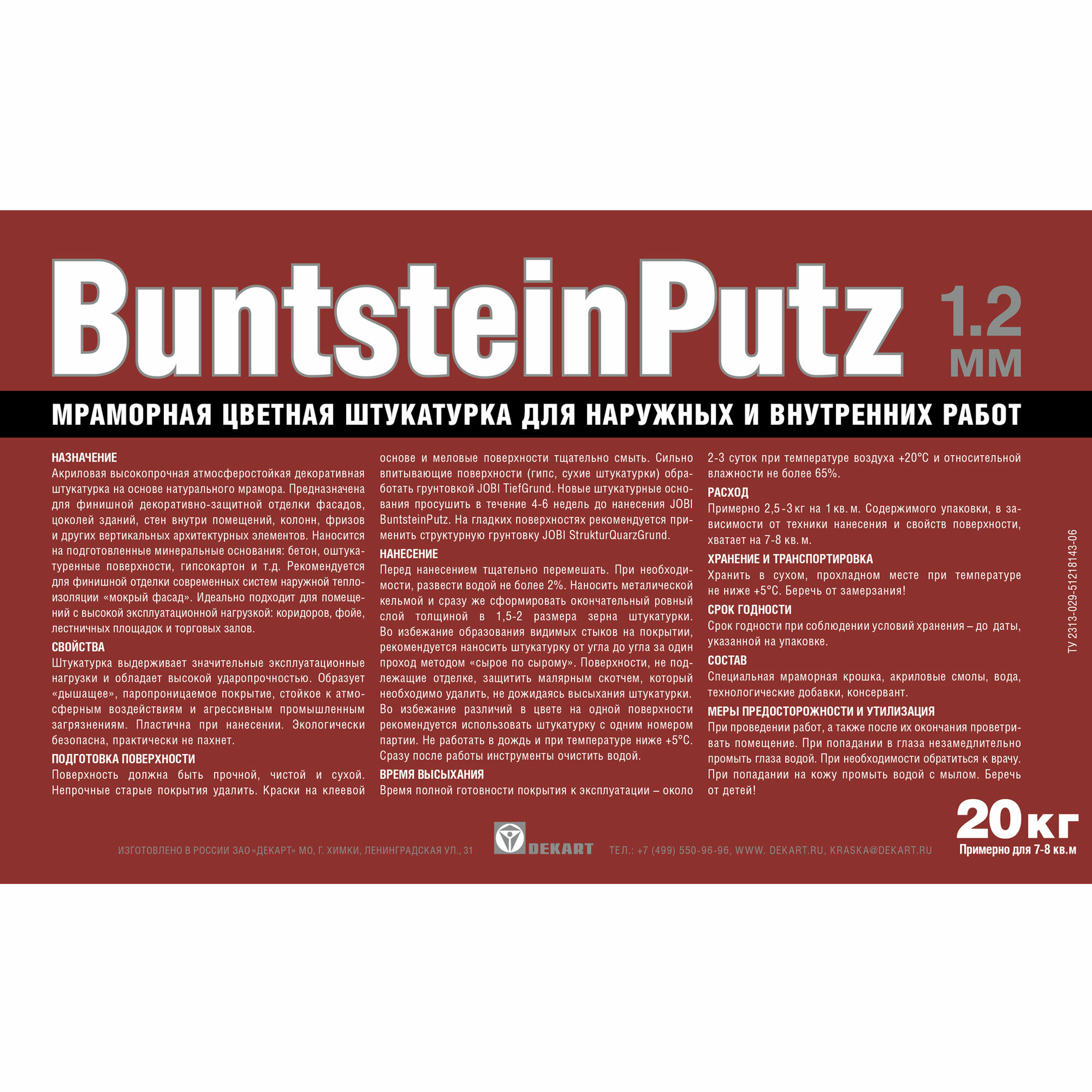JOBI Штукатурка мраморная №64 размер зерна 1,2 мм объем 20 кг