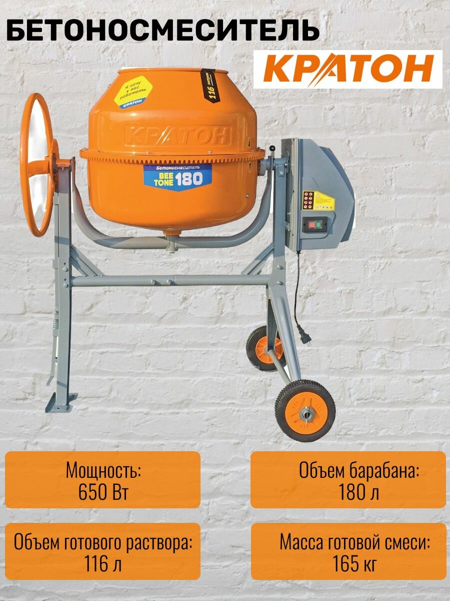 Бетоносмеситель Кратон BeeTone 180, 4 02 07 023 интересное: