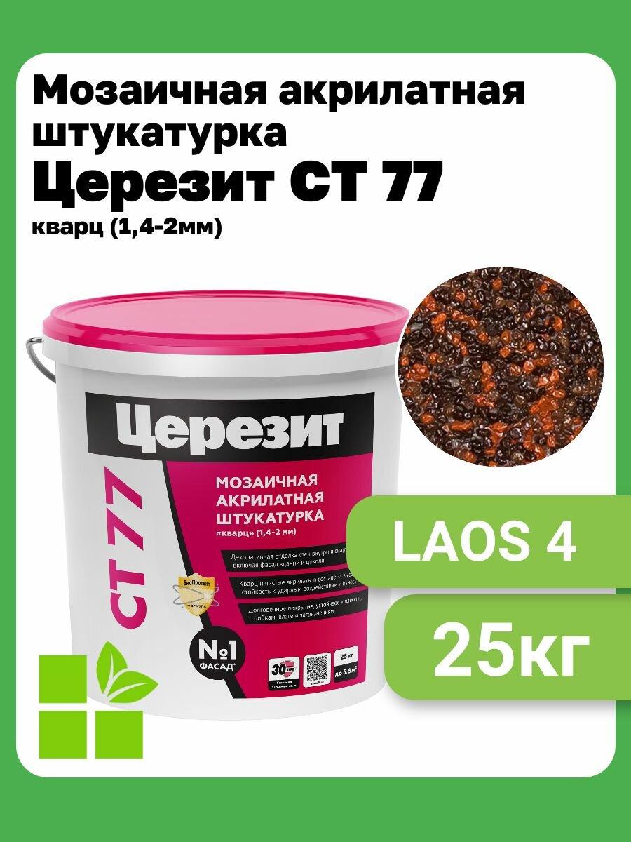 Ниже Вы можете прочитать отзывы на Церезит CT 77, цвет Laos 4, фасовка 25 кг., ознакомится с подробными характеристиками, посмотреть интересные обзоры и фотографии на Церезит CT 77, цвет Laos 4, фасовка 25 кг..