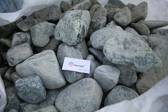 Змеевик галтованный зелёный (70-200 мм), тн интересное:
