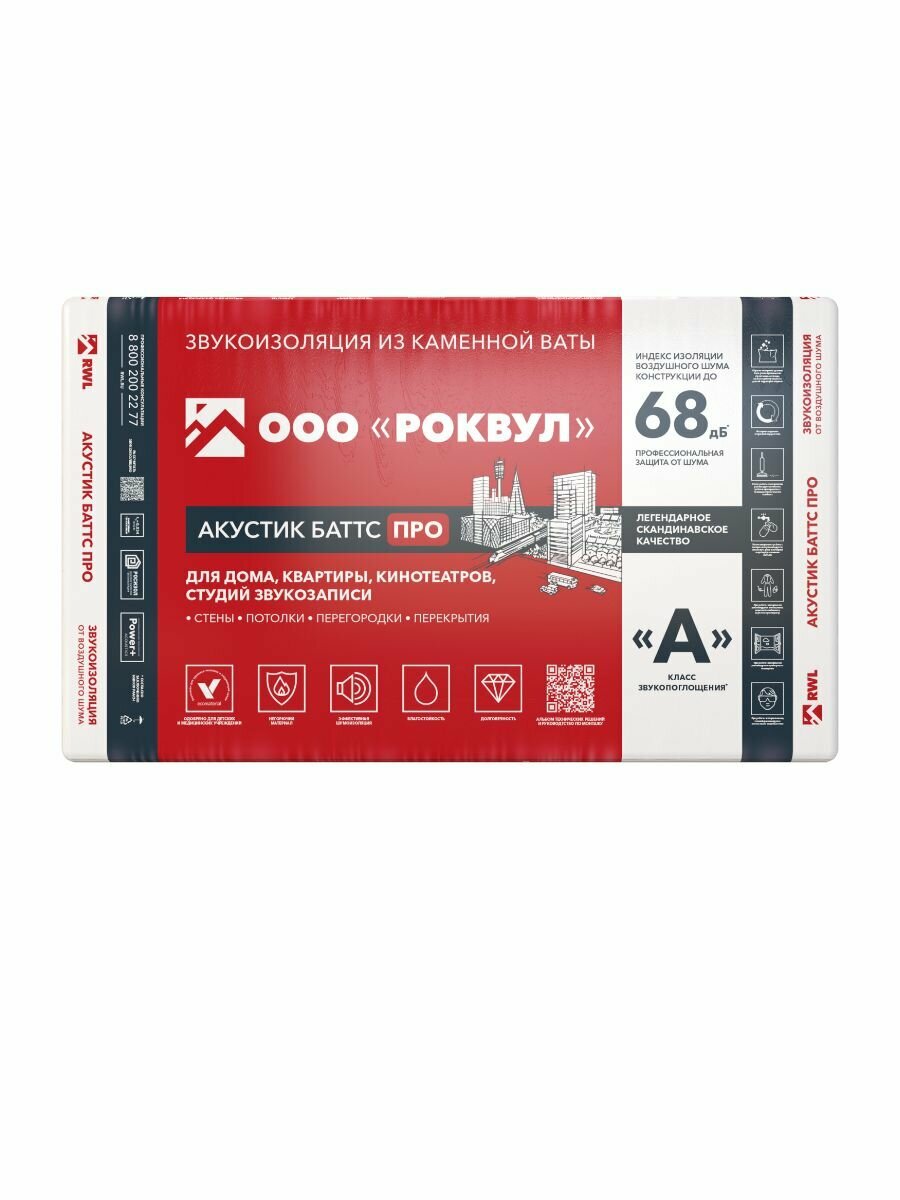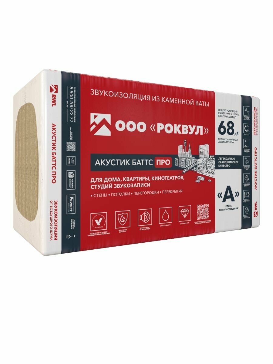 Звукоизоляция ROCKWOOL Акустик Баттс Про 50х600х1000 мм 4,8 м2, негорючая, 8 плит интересное: