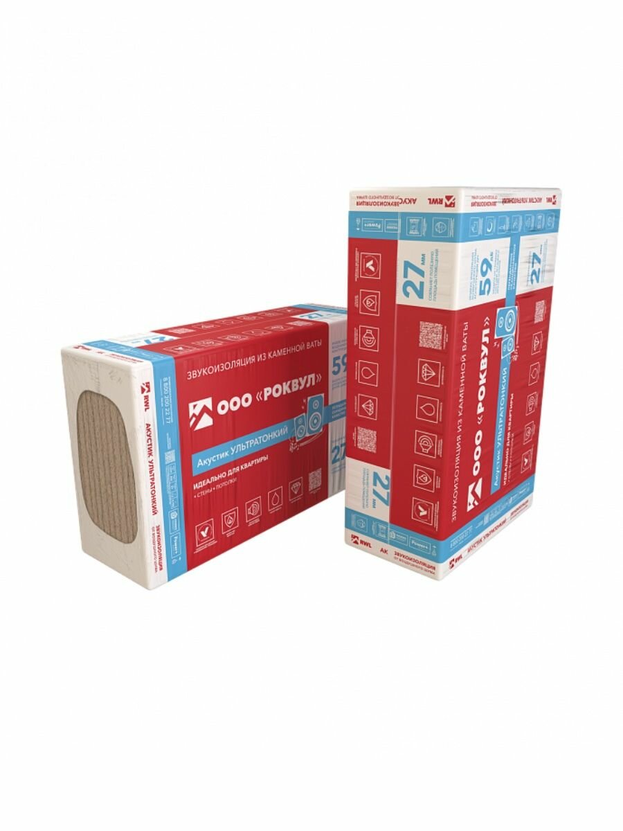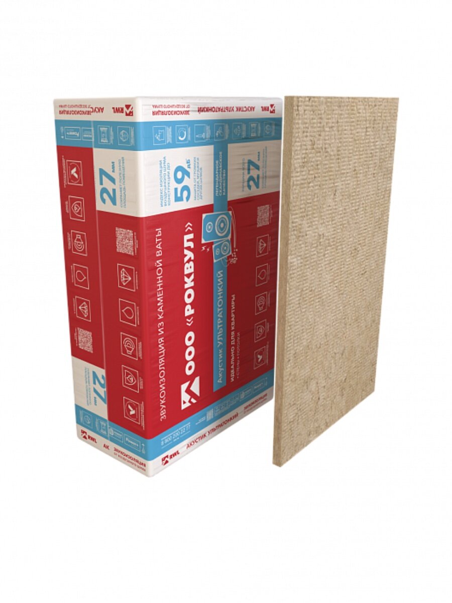 Звукоизоляция ROCKWOOL Акустик Ультратонкий, 1000х600x27 мм, 12 штук интересное: