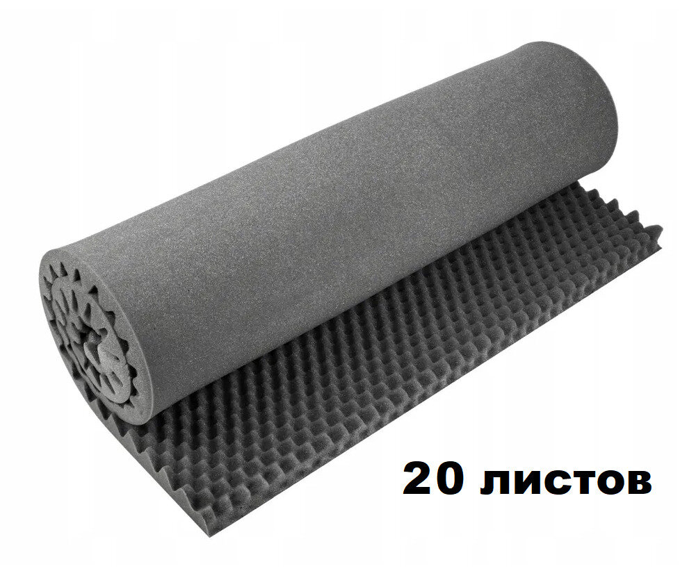 Акустический поролон Волна 15, Темно-серый, 200х100см 20 штук, 40 кв. м интересное: