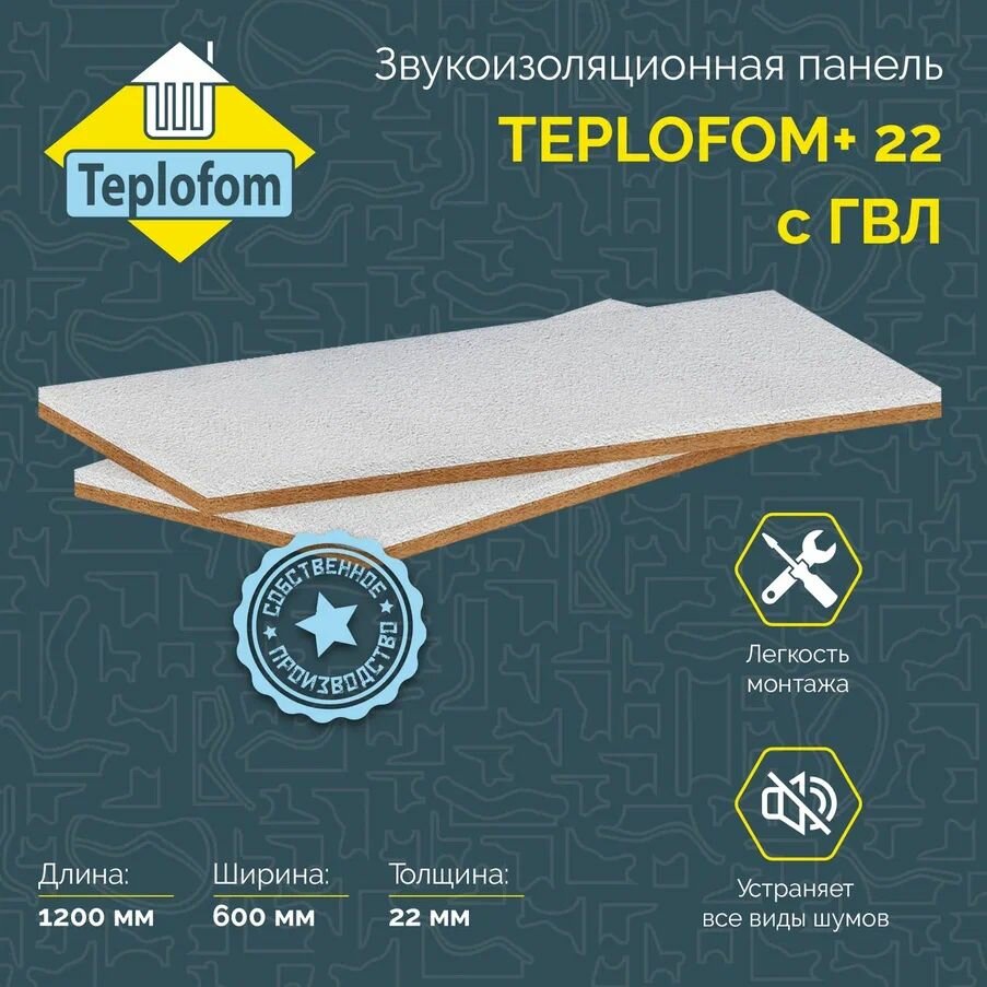 Звукоизоляционная панель с ГВЛ для стен, пола, потолка TEPLOFOM 1200х600х22 мм- 2шт. интересное: