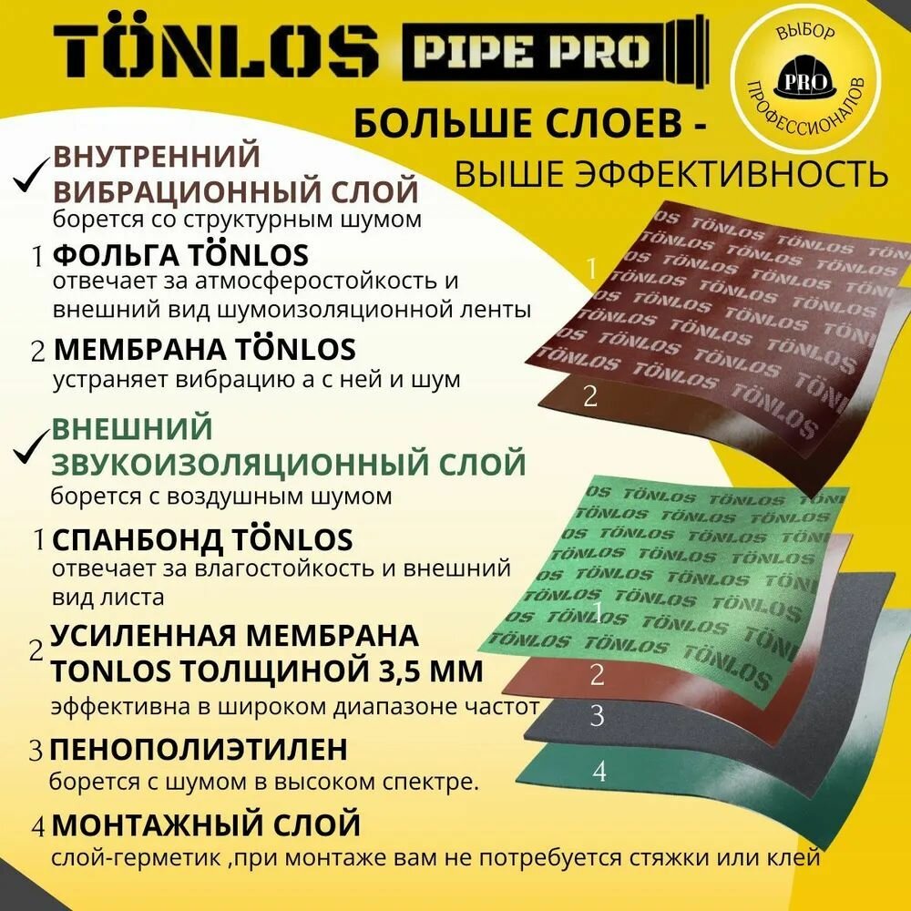 Шумоизоляция для канализационных труб TONLOS Pipe Pro. Профессиональный набор многослойной мембранной шумоизоляции. интересное: