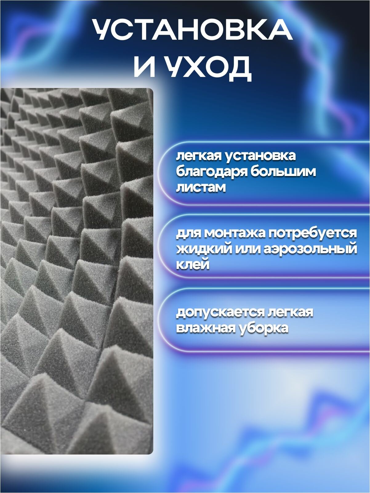 Акустический поролон пирамида 30 мм 192х95 см, звукоизоляция, шумоизоляция