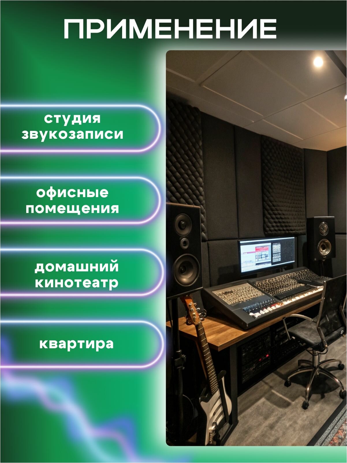Акустический поролон пирамида 30 мм 192х95 см, звукоизоляция, шумоизоляция