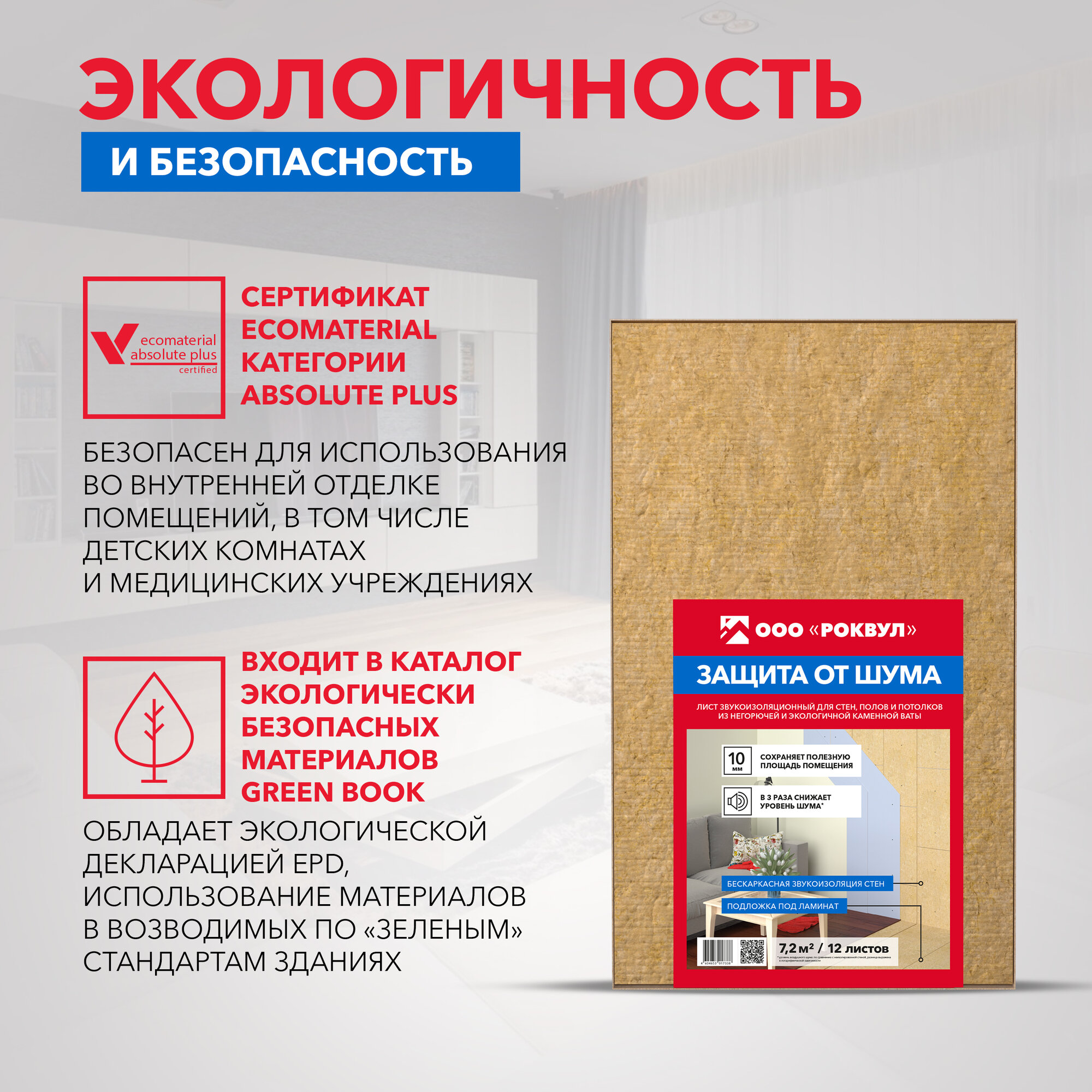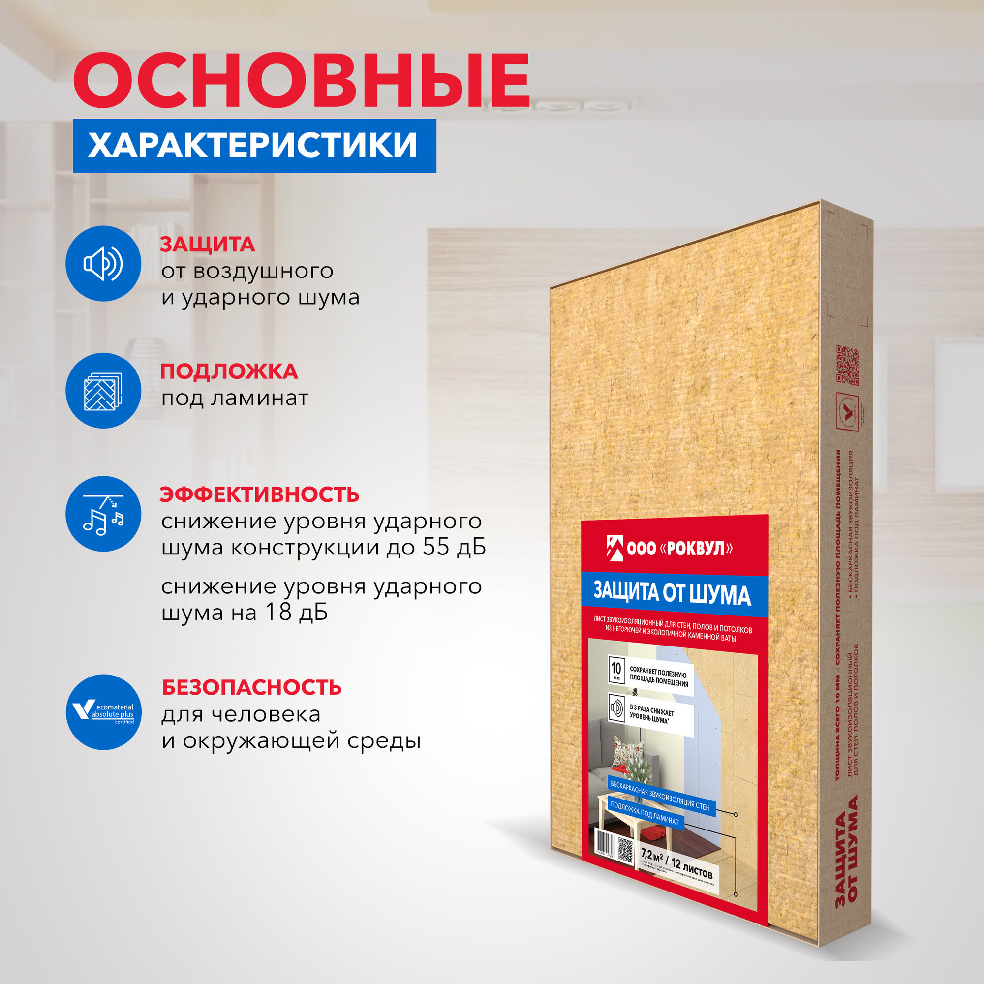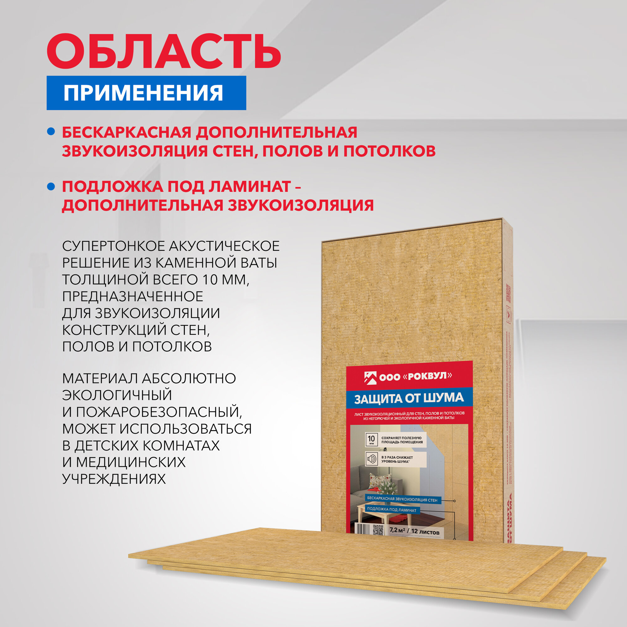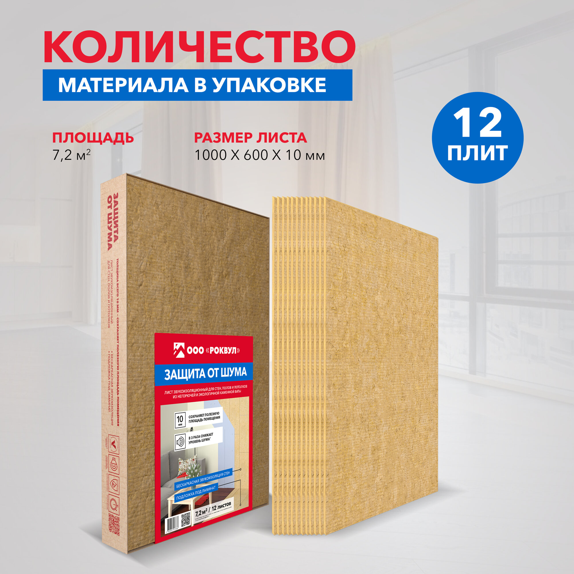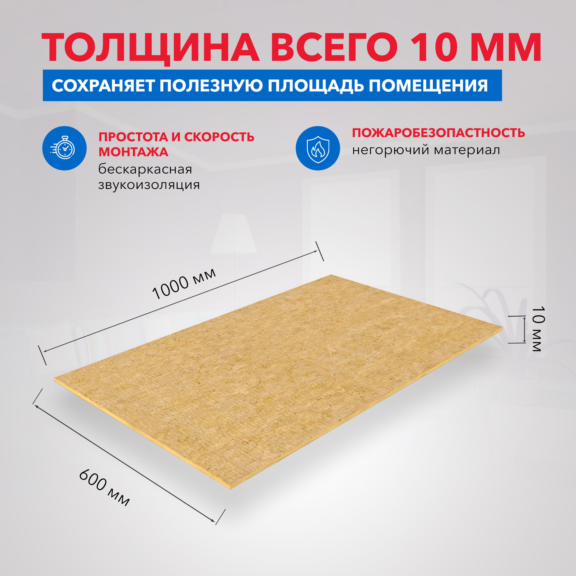Роквул Звукоизоляционная плита 1000х600х10 мм, 1 упаковка 7,2 м², 10,8 кг интересное: